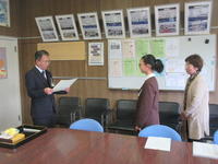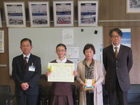 教育委員会の担当の方が来校され、校長室にて表彰式が行われました。6年生の女子児童と祖母のそれぞれの句が認められ、復興部門で佳作を受賞しました。おめでとうございます。