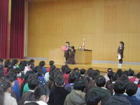 お昼休みの時間に体育館で合唱部によるクリスマスコンサートが行われました。合唱部員は、この日に向けて歌の練習や会場準備など、全校生に喜んでもらおうと一生懸命準備をしてきました。当日はクリスマスに関連する歌を披露し、透き通る歌声が体育館一杯に響きました。多くの児童が訪れ、大きな拍手に合唱部員も笑顔であふれていました。