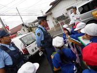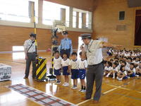 野田小学校の学区内には踏切があり、渡って登下校する児童もたくさんいます。今回は、安全な踏切の渡り方について、DVDの視聴をしたり模擬踏切で実際に渡る練習をしたりして、踏切での事故防止や安全な渡り方について学習しました。