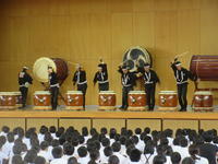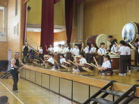 土曜授業を生かして全校生参加の和太鼓鑑賞教室を行いました。福島市松川町を拠点とする「愛宕陣太鼓 連響風組」の皆さんにお越しいただき、前半に迫力のある力強い演奏を披露していただきました。後半には、各学級代表児童による和太鼓演奏体験を行いました。子どもたちだけでなく、校長や本校職員の出番もあり、全校生で盛り上がる鑑賞教室となりました。