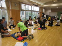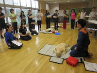 福島市消防本部西出張所の方を講師に招き、本校職員と保護者の方によるAED講習会を行いました。夏のシーズンには、海やプールでの水難事故が発生していることから、本校職員としても水泳学習等において徹底した安全対策が求められています。今回の講習会では、AEDの素早い準備と救急車の手配、人口呼吸や心臓マッサージなどの方法について具体的に学ぶことができました。