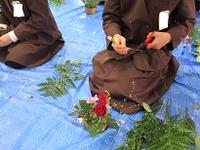 華道の起源や節分の話をうかがったあと、それぞれの「心の鬼」を退治することをテーマに花を生けました。個性あふれるすてきな作品ができあがりました。