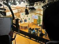 テレビ局のスタジオを見学し、「げっきんチェック」のリハーサルを見学したあと、テレビでその番組を見せていただきました。「これ、さっき練習してたやつ!」「今、このスタジオでやってるその場所にいるって不思議!」など、驚きでいっぱいでした。番組制作以外にもたくさんの仕事があり、160人以上の人が働いていることも教えていただきました。