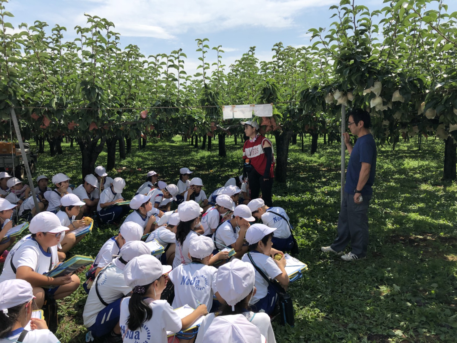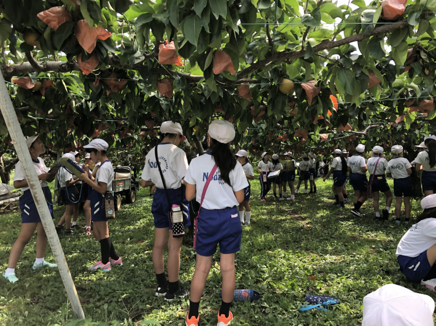 ◇8月30日、5年生は3回目の梨畑見学に出かけました。