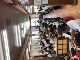 ◇9月5日、6年生は会津方面へ修学旅行を行っています。会津若松市は天気もよく、皆元気で予定通り行動しています。写真は出発の様子、日新館での様子、昼食風景です。