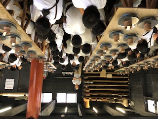 写真は、慶山焼陶芸体験、御薬園見学、宿舎の夕食風景です。