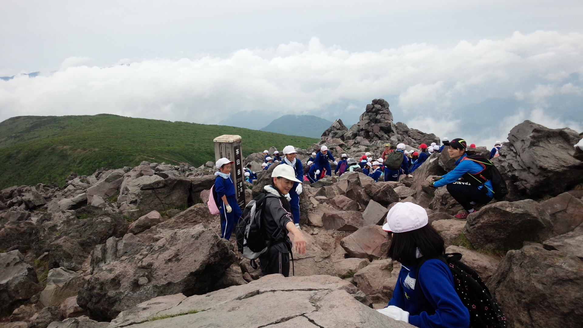 12時頃に登頂しました。子どもたちは声をかけ合いながら登り、登頂の喜びを分かち合っていました。