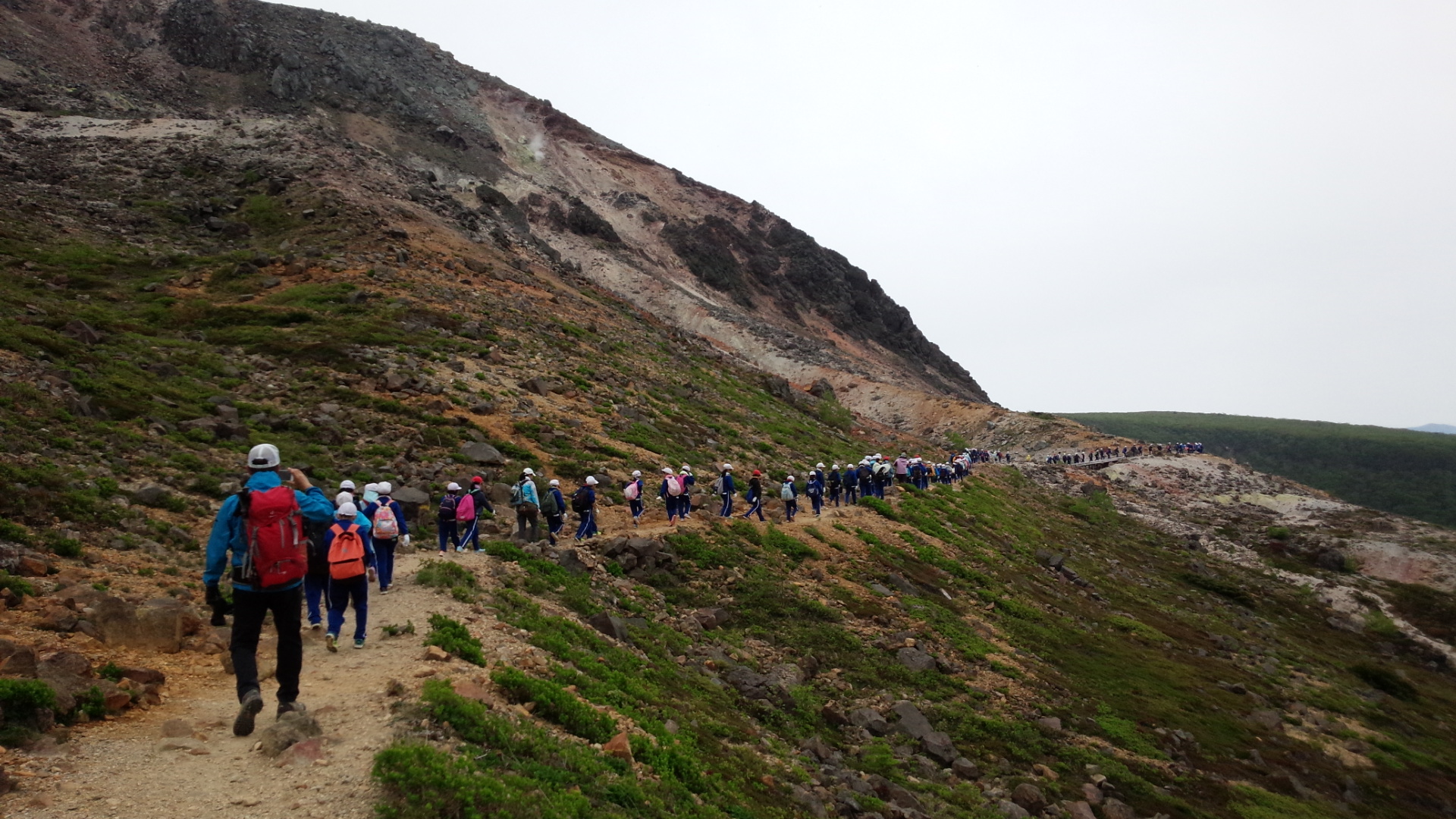 茶臼岳の天候は曇り、予定通り、登山を行いました。