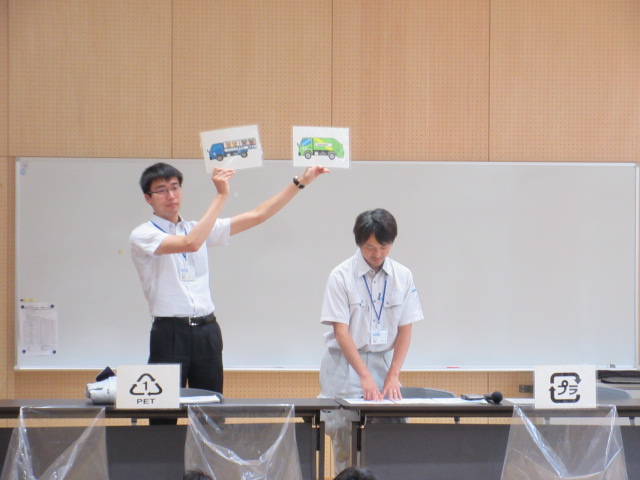 福島市のごみがとても多く出されていることや、分別してごみを出す大切さを学びました。ペットボトルを実際に分別しました。また、ロードパッカー(ごみ収集車)の仕組みを見せていただいたり、ごみを実際に出して、収集車に入れたりする体験ができました。