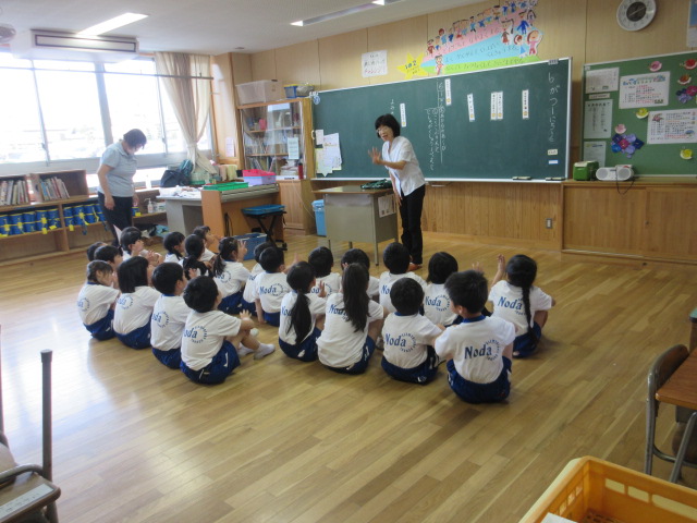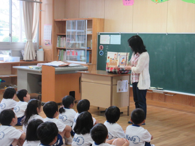 今年度第1回は1年生からです。絵本の読み聞かせや手遊びなどで心がほっこりする時間をすごしました。
