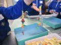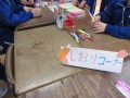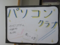 看板を手に持ち、『体育館へきてください。』『○○クラブは△室です。』と、児童がクラブ発表会への呼び込みをする声が廊下に響きました。マジック披露、バトミントンの的当て、スライム作りなど、児童は日ごろの活動の成果を工夫して発表していました。