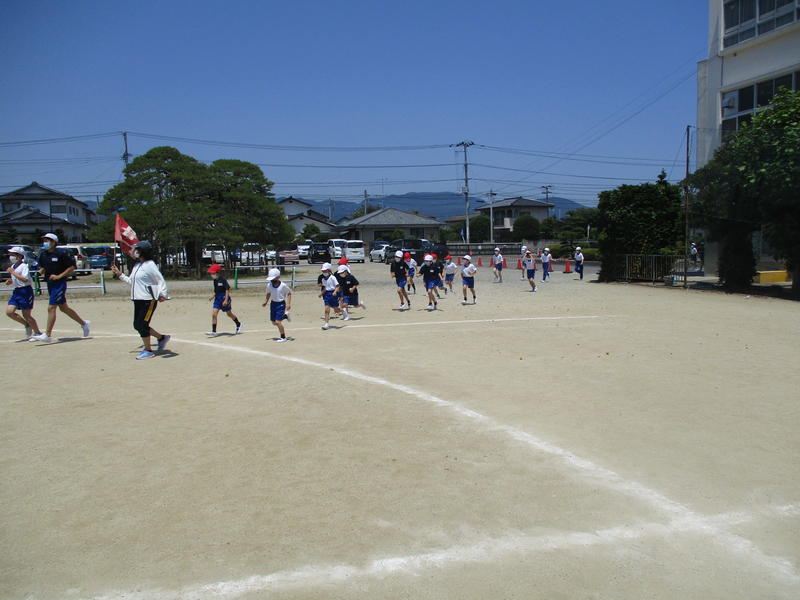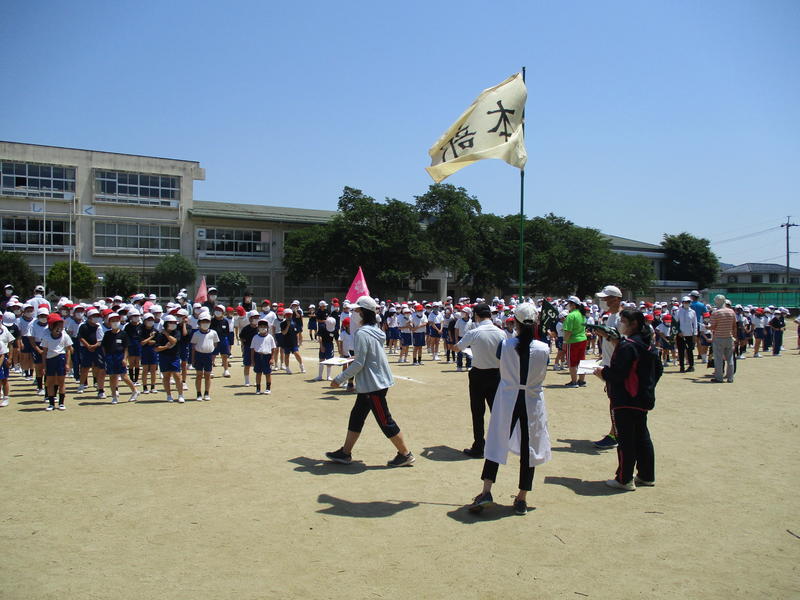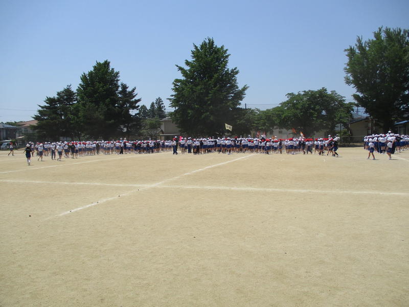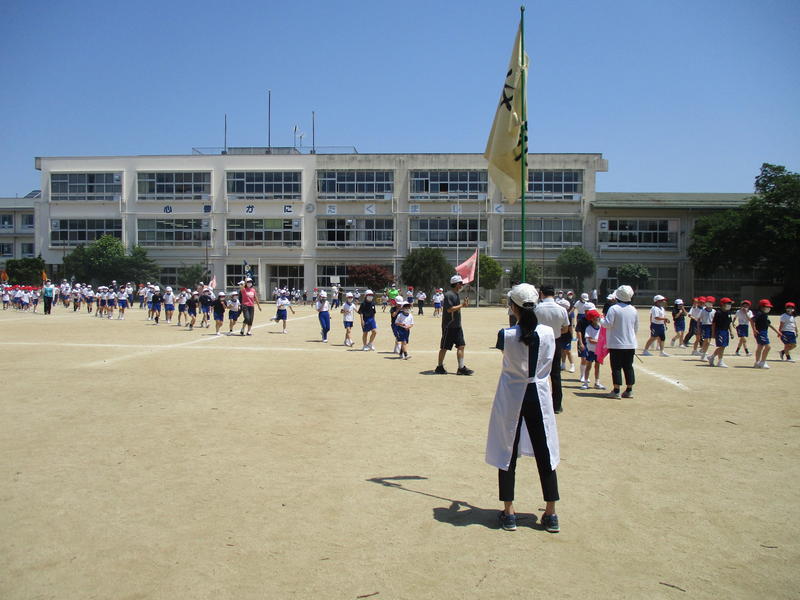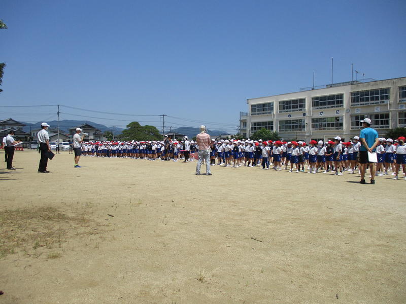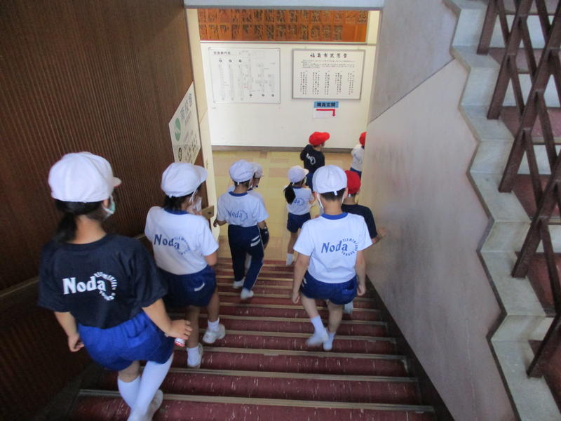 2020年6月10日 12時20分本日、今年度最初の避難訓練が行われました。震度5以上の強い地震が起き、校庭に避難をする設定です。今回は、校庭に避難するときの各学年の経路を確認することが主な目的です。子どもたちは、避難するときの約束「ぼう・はん・お・か・し・も」(「帽子」「ハンカチ」「おさない」「かけない」「しゃべらない」「もどらない」)をよく守り、5分以内で全校生が避難することができました。