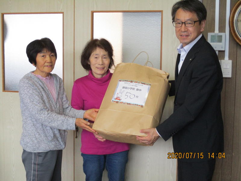 タオルを寄贈していただきました 2020年7月15日 15時37分 本日、吾妻地区老人クラブ連合会婦人部の方より、タオル50枚が寄贈されました。これからの教育活動に有効に使わせていただきます。ありがとうございました。