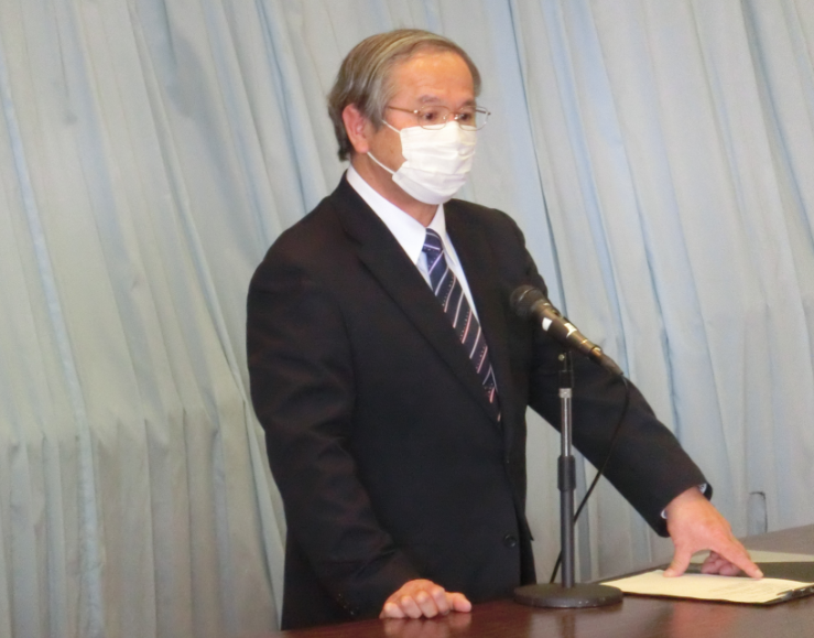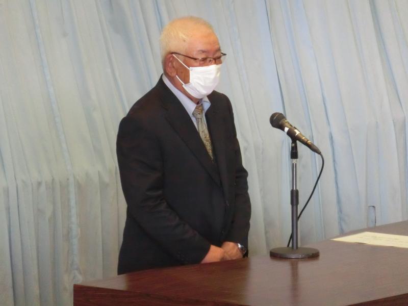 令和2年度、同窓会に入会した生徒は118名です。代表者が『同窓会入会の誓い』を述べた後、『同窓会世話人』2名が紹介されました。
