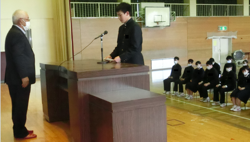 先日25日(木)、本校体育館にて、同窓会会長様の御出席のもと同窓会入会式を行いました。