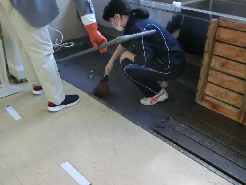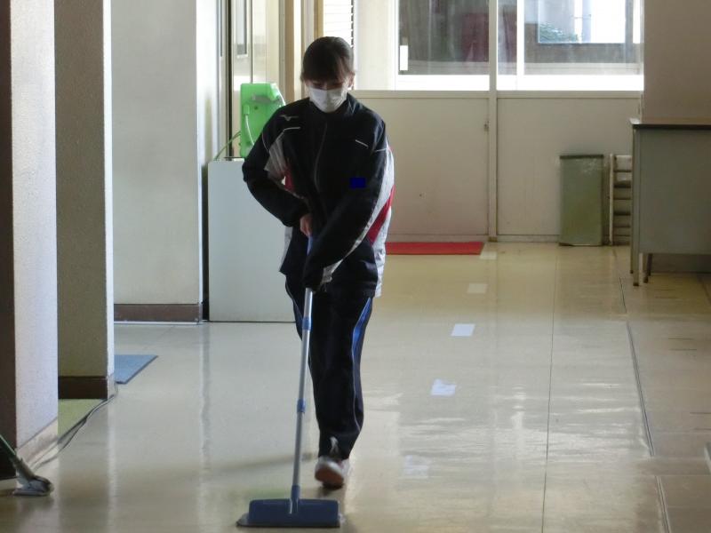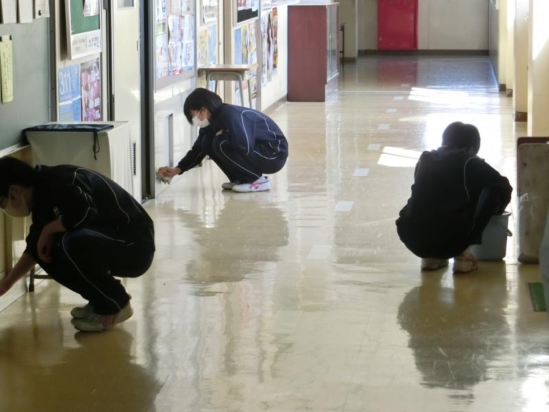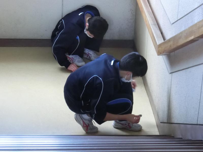 階段やトイレ、廊下の床面を普段より時間をかけ丁寧に磨いています。