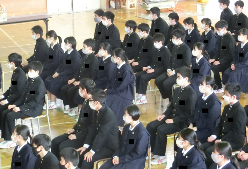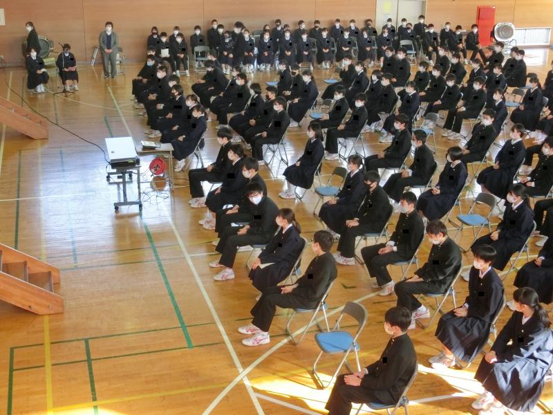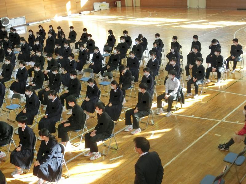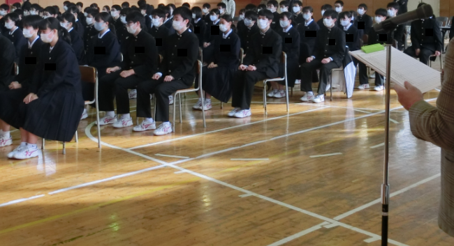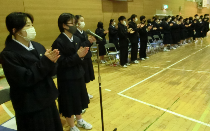 3年生代表生徒の言葉を参加者全員で聴いて、会は終了です。心が温まる時間でした。後輩(1,2年生)と先輩(3年生)が互いに大切な存在であること感じるとともに支えあった時間の大切さが伝わってきました。