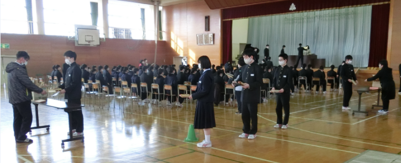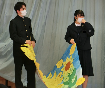 ◇ 各学級代表生徒から3年生各組へ贈られます。
