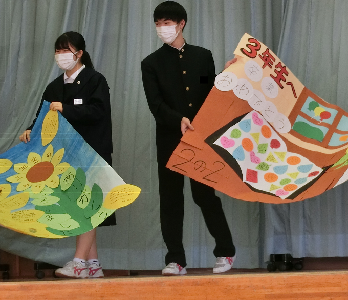 この会は、お世話になった3年生に、後輩が感謝の思いを伝えるとともに卒業という門出を祝う場です。