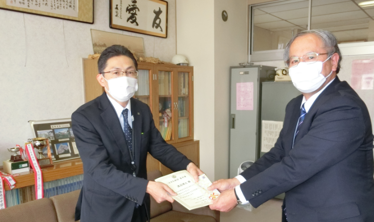 「小さな親切運動」の贈呈式が中止となったため、東邦銀行福島西中央支店長様が、本校校長へ表彰状を届けてくださいました。