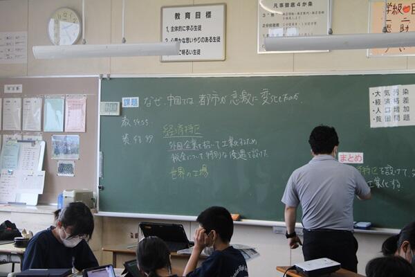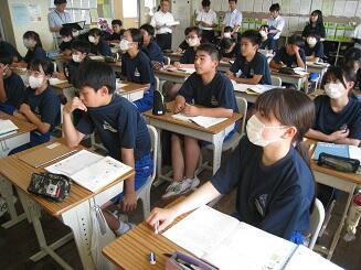 6月28日(金)5校時に福島支部中教研(教員の授業を研究する組織)の社会科の授業研究会が行われました。1年1組に本校以外の先生方が20名ほど訪問し、授業を参観し、その後研究協議が行われました。
