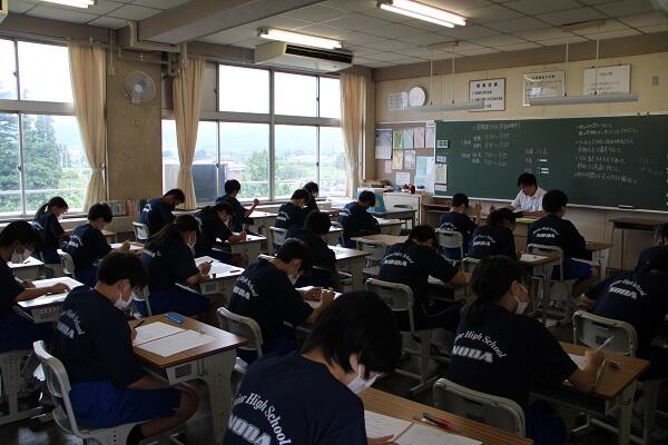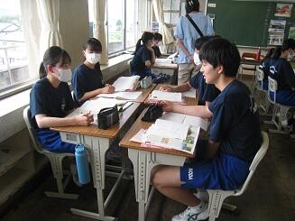 7月2日に国語科の校内授業研究会、7月4日に県教委のイノベ人材育成推進事業の一環として数学の授業研究会が本校で行われました。いずれも、2年生の授業を通して、我々教師の授業力を高めることを目的に実施されました。また、7月5日には県北教育事務所長訪問、7月9日には学校評議員会が行われ、本校を訪れた皆様に、短い時間ながら、すべての学級の授業を参観していただきました。生徒が落ち着いて学習している様子は称賛され、たいへんうれしく思いました。