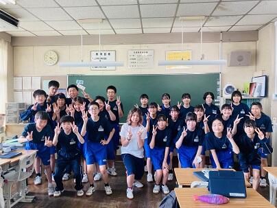 7月に入り、アメリカのバージニア州アレキサンドリアという町に住む中学生が一名、夏休みを利用して本校で日本の中学校生活を経験しました。2年生の教室で、1週間ちょっとの短い期間ではありましたが、授業や給食の時間を共に過ごし、友情を育みました。