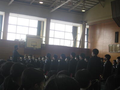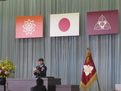 校長より、式辞の中で「野田中学校は凡事徹底の学校です。当たり前のことを当たり前にやる。やり続ける。これは決して簡単なことではありません。」との話がありました。卒業生代表の答辞では、「野田中学校での経験をもとに困難を乗り越え、夢に向かって、挑戦していきます。」と決意が述べられました。式歌では、卒業生が「旅立ちの日に」を思いを込めて歌いました。卒業生一人一人がとても素敵な表情をしていました。また、全校生が作り上げた会場の雰囲気がとても素晴らしかったです。