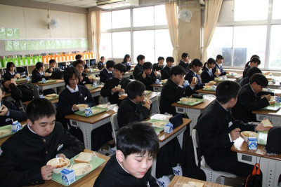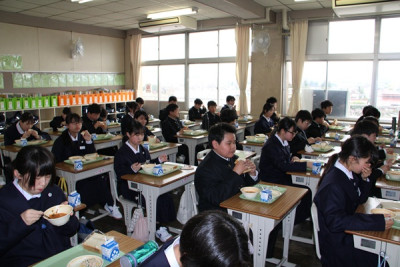 11日(金)のメニューは、ツナサンドとミネストローネでした。中学生にも食べごたえがある量です。最初の週ですので疲れているかなと心配しましたが、「おいしい?」と聞くと、「おいしいです」と元気な反応があり、安心しました。来週からは、時間割による授業が始まります。中学校の生活に慣れ、各自のよさが思う存分発揮されることを期待しています。