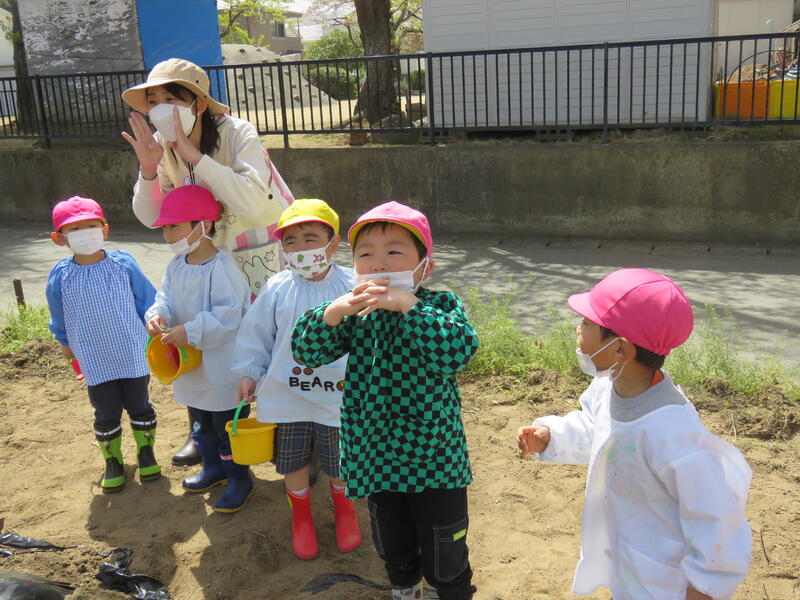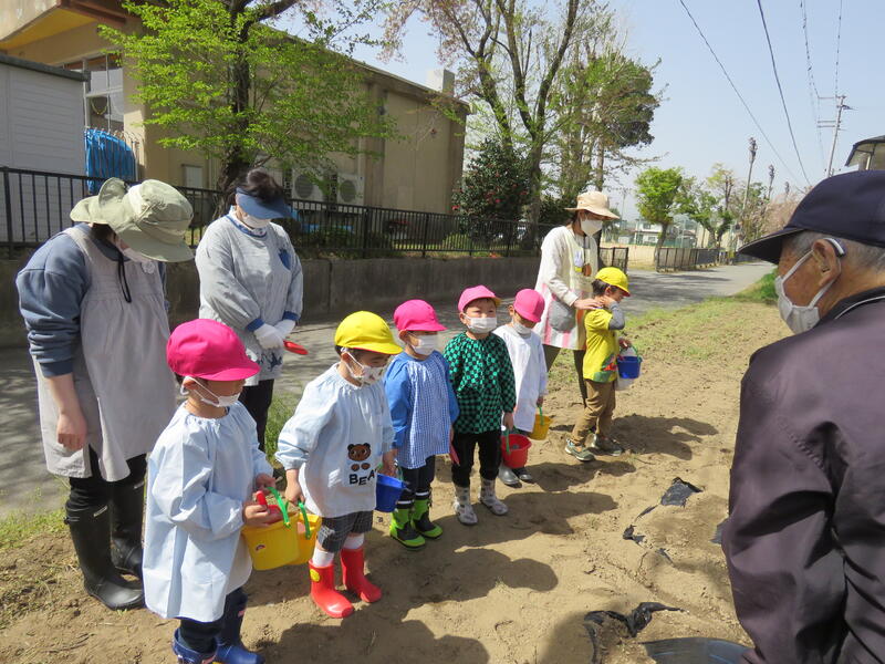 「大きくな~れ!」「おいしくな~れ!」のかけ声とともに、子どもたちが『じゃがいも』を畑に植えました。その様子をお届けします。じゃがいも植え.pdf