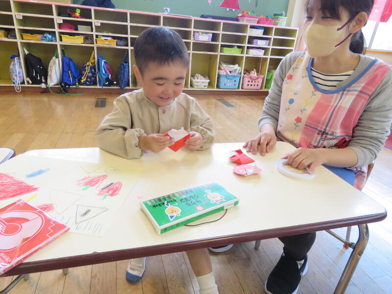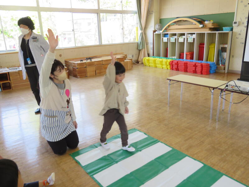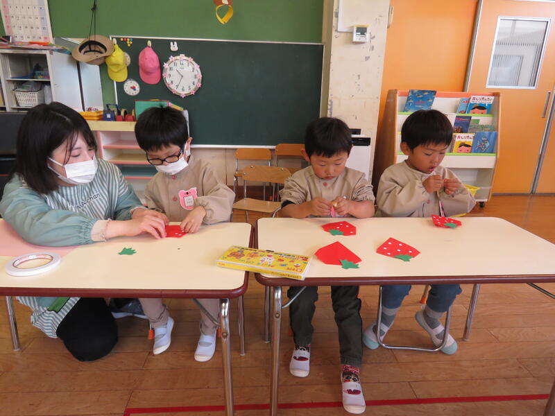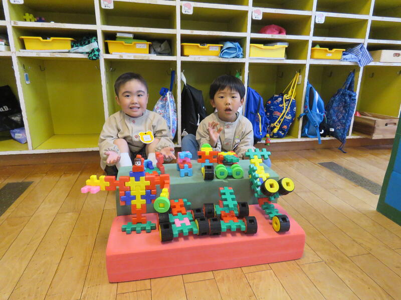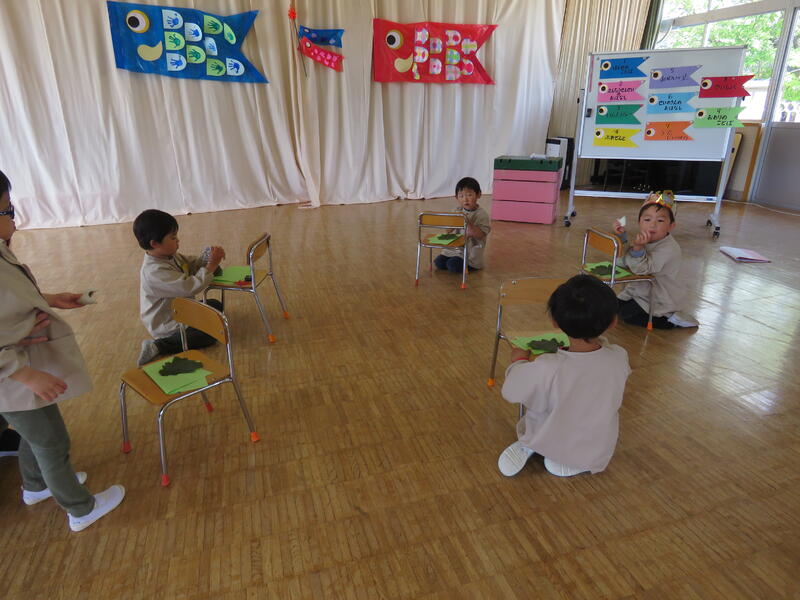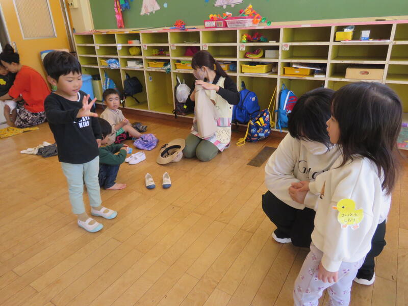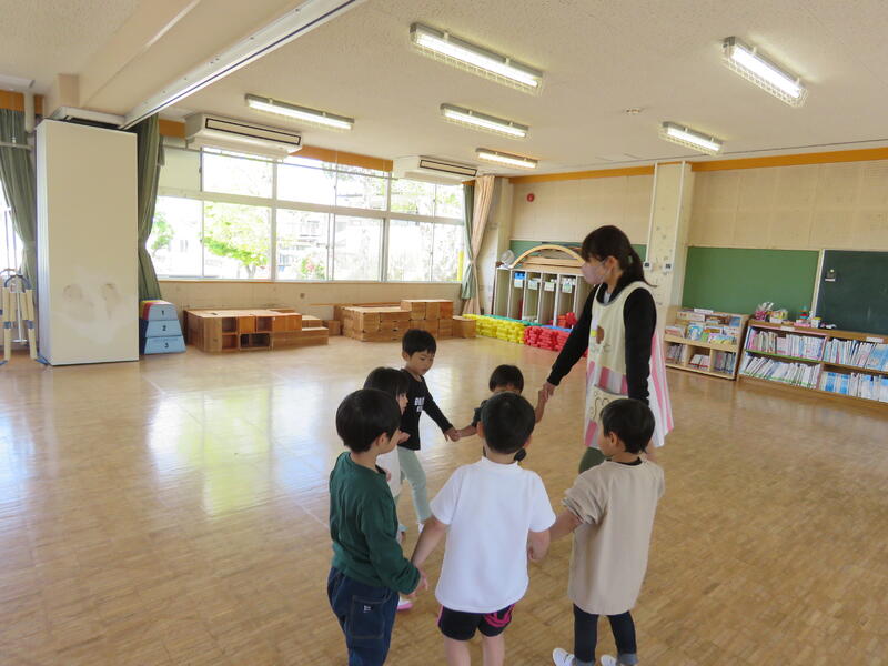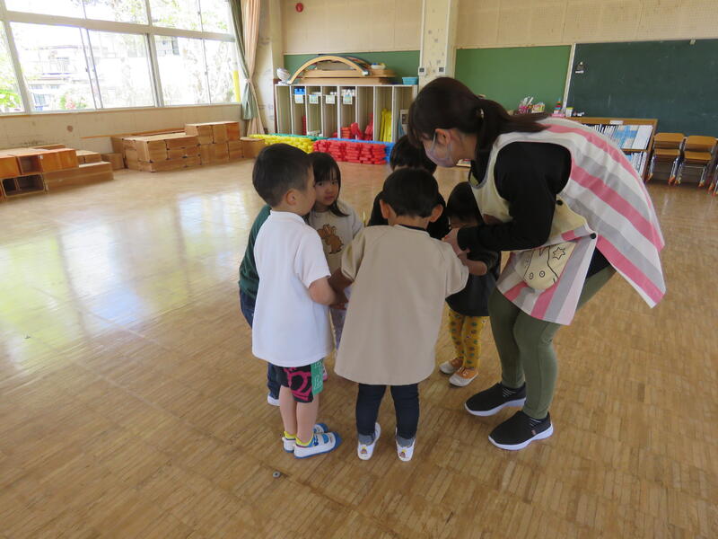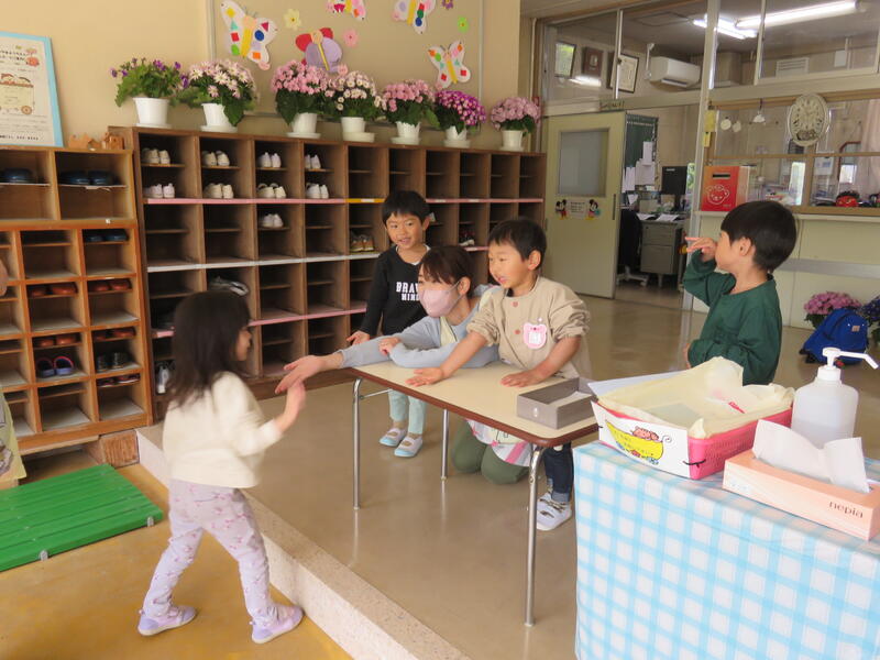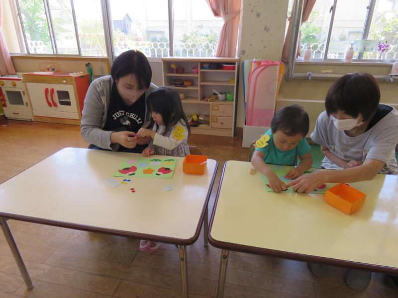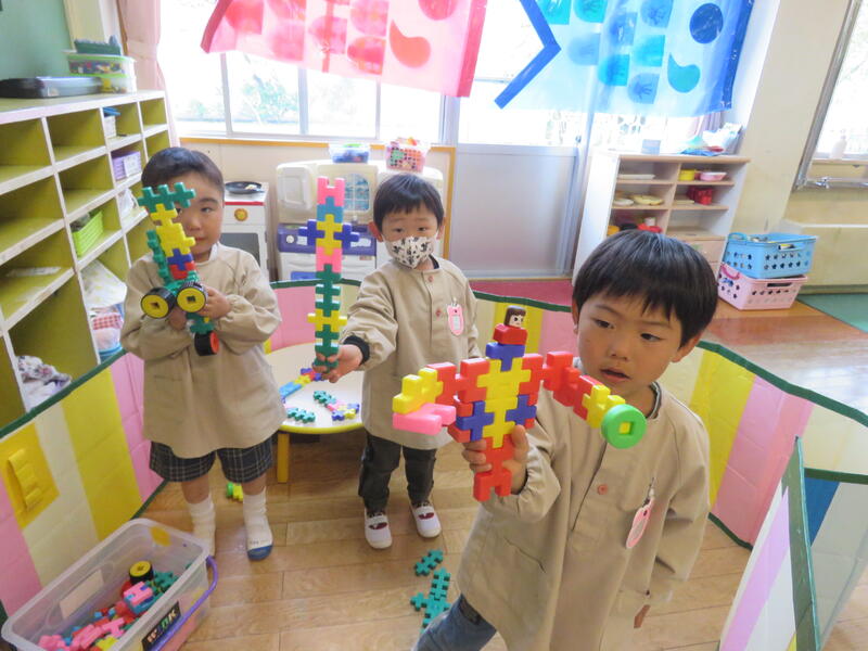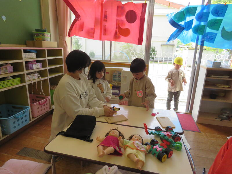 連休明け、昨日からの雨で肌寒い陽気ですが、子どもたちは元気にお部屋の中で活動しています
