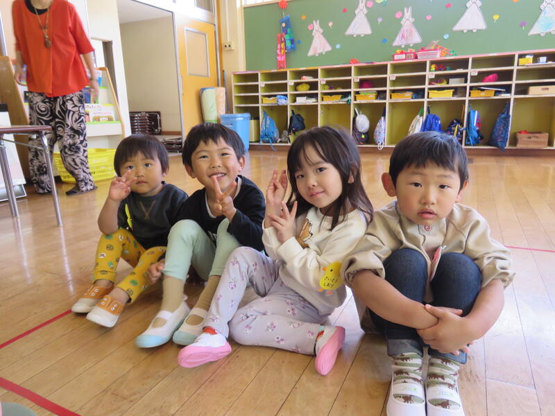 今年度の岡山幼稚園は、年少児5名と年長児2名の7名の子どもたちとのスタートとなりました。そして、学級は、年少児・年長児が一緒に生活・活動することを基本とした「合同保育」を実施し、『なかよし組』として今年1年過ごしていきます! 内容によっては、年少児は『うさぎチーム』、年長児は『きりんチーム』として別々に活動することもあります。