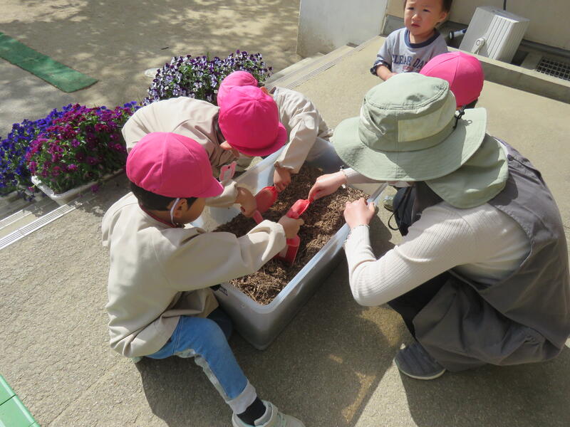 人それぞれ、芋それぞれ、成長の様子に違いはありますが、すくすく育っています 子どもたちも、一人一人個性があるなかで、毎日楽しく幼稚園生活を送っています