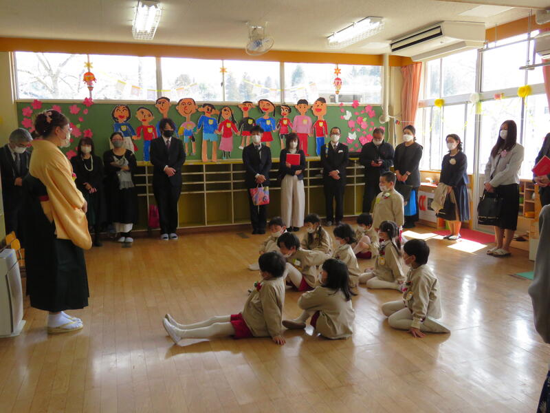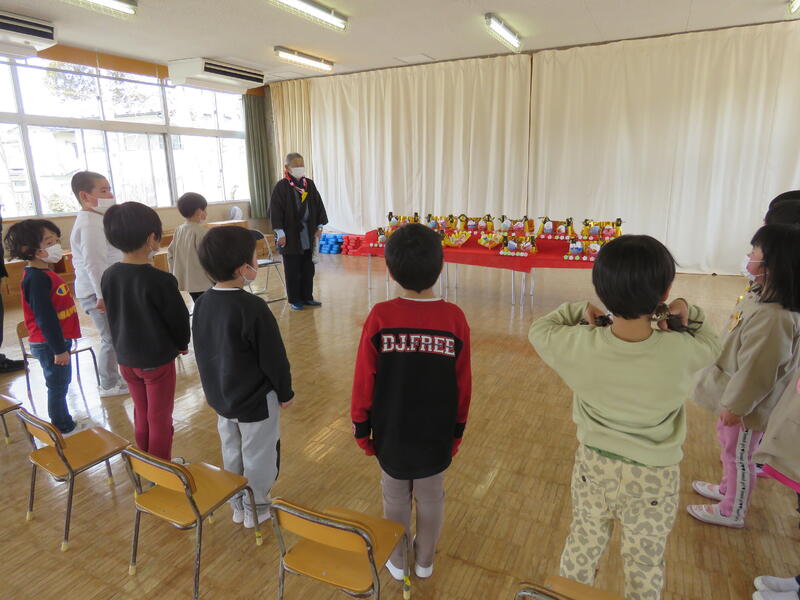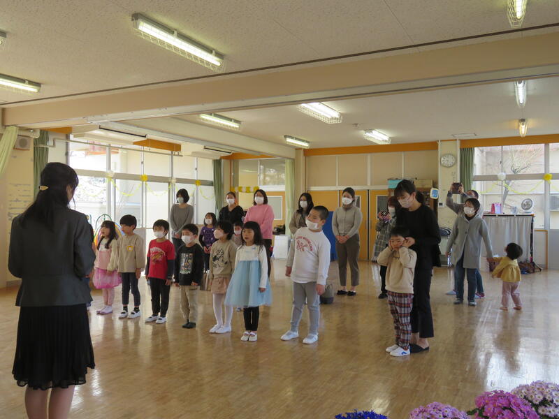 今日は、令和4年度最後の日、年度末の職員異動により、岡山幼稚園を離れる先生方とのお別れの式「離任式」を行いました。3名の先生方、お体にご留意いただき、新任地でも頑張ってください。ありがとうございました。