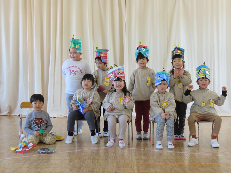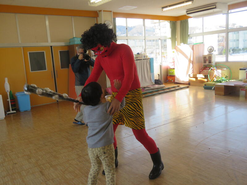 2023年2月3日 10時00分今日は「節分」 でも、岡山幼稚園では、一足早く一昨日(1日)のうちに、「豆まき会」として、子どもたちの心の中にいる『鬼』を追い出すことができました! ところが、「心」の中にいる鬼どころか、本物の『鬼』も現れたのでした! さぁ大変、子どもたちは、怖いけど果敢に鬼めがけて豆をぶつけ、やっつけることができました!追い出すことができました!! ほっと一安心♡