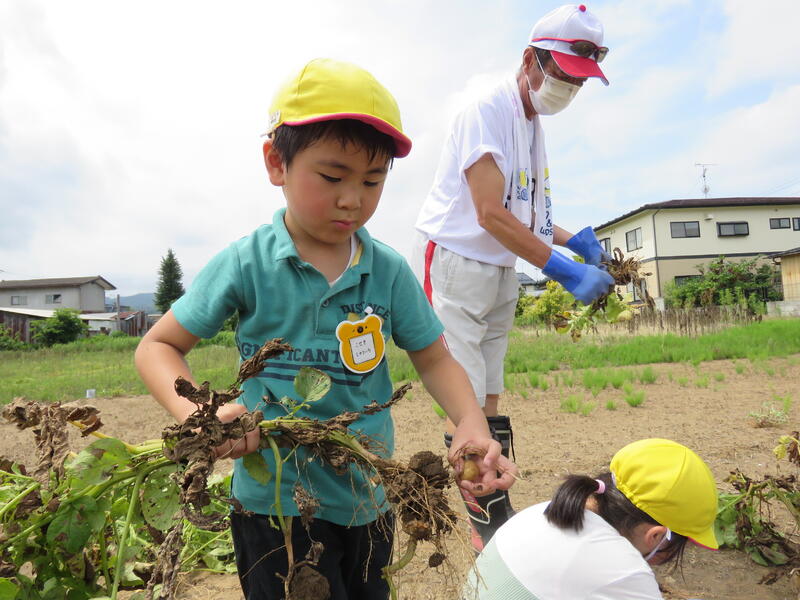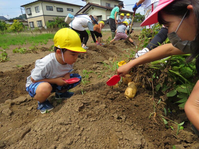 今週 11日 月曜日に、「じゃがいも掘り」をしました。4月に植えた苗が、順調に成長し、収穫できるまでになりました。その収穫の様子をお伝えした「お知らせ」はこちらです。じゃがいも掘り.pdf