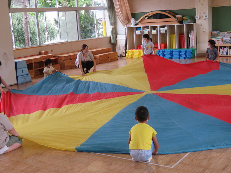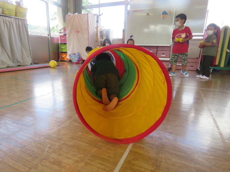 遊戯室では『運動会』の恒例種目「バルーン」の練習
