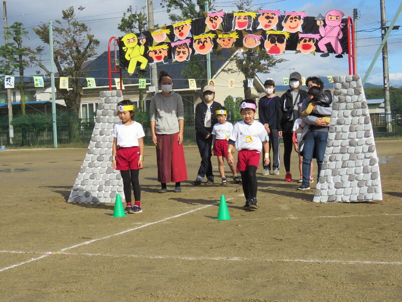 連休初めの土曜日、8日に『おかやま忍者の修行でござる』を行いました。前日の雨でぬかるみはありましたが、無事校庭で実施することができました おじいちゃんやおばあちゃん・おじさんも、そして、未就園児の子どもたちもたくさん参加してくれました。 みなさん、ありがとうございました。 当日の記録写真の枚数が多いので、保護者の皆さんに、まずは前半の様子を「お知らせ」しました。それが、こちらになります。運動会①.pdf