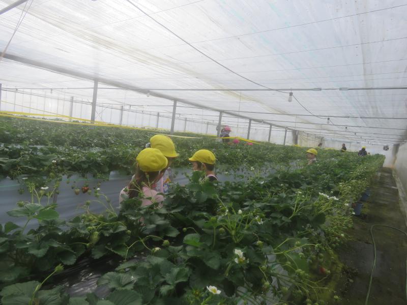 今日は、下飯坂のいちご園へ、みんなで『いちご狩り』に出かけてきました。市のマイクロバス(2台)を出していただき、冷たい風はありましたが、温かいハウスの中で、たくさん甘~いイチゴをたくさん食べることができました。