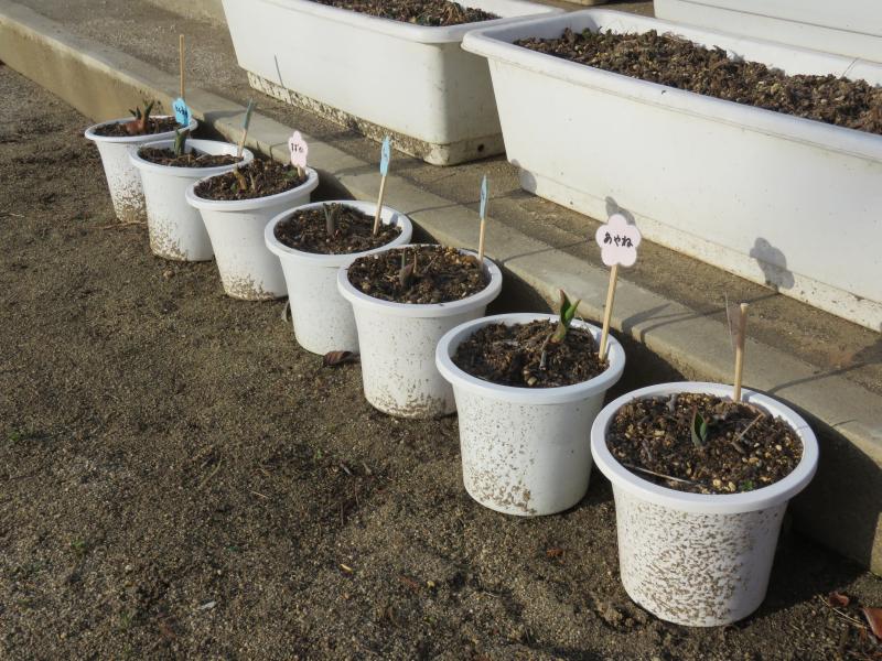秋に子どもたちが植えた球根から 花が 芽が