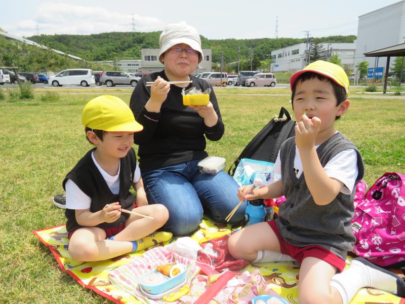 先週の金曜日14日に、『親子遠足』を実施しました。目的地は、幼稚園から近い「じょーもぴあ宮畑」です。現地集合・現地解散として、お母さん方に協力していただきました。去年は、「臨時休園」などの影響もあり、親子での遠足は実施できませんでした。2年振りの『春季遠足』です!