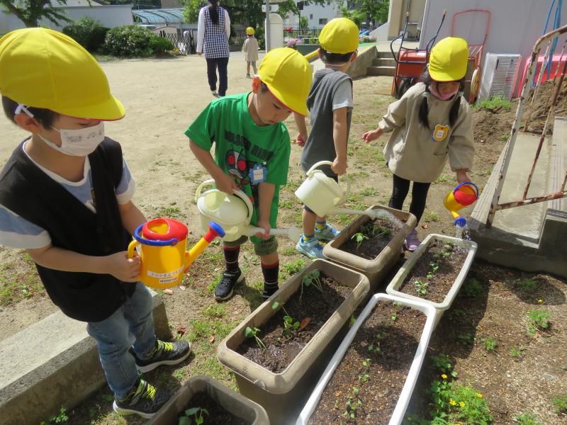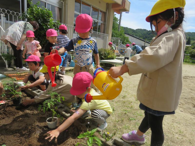 ★幼稚園でも、野菜の苗を植えました。
