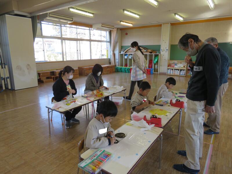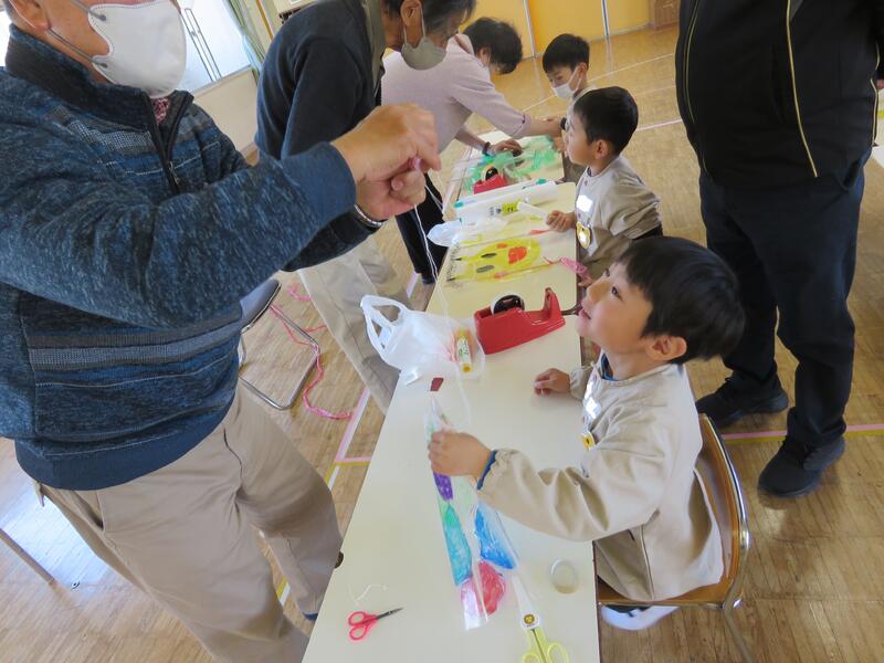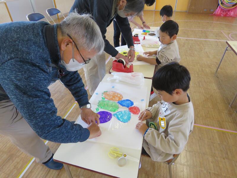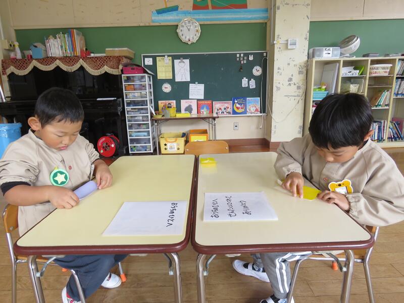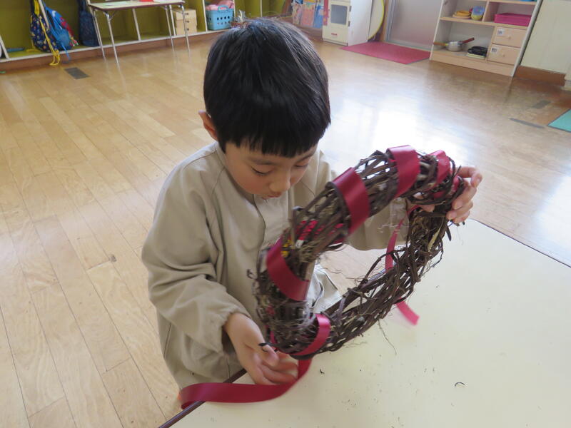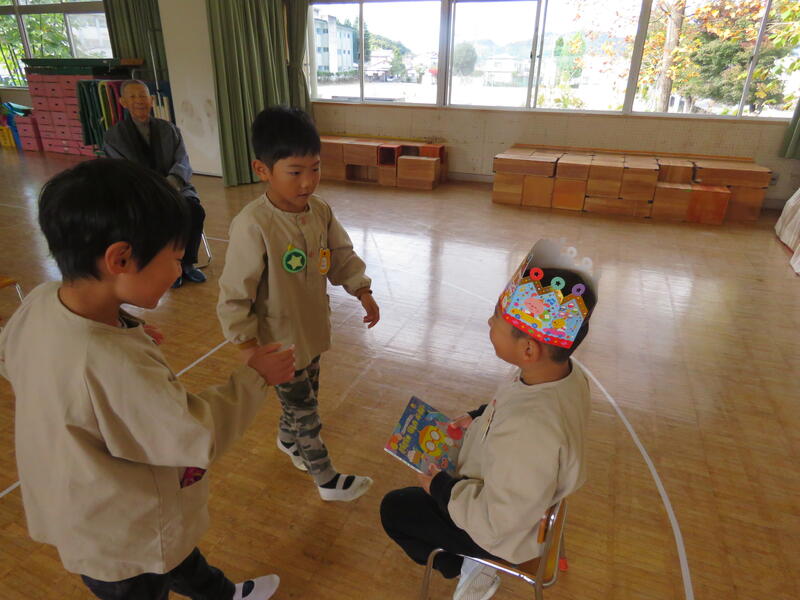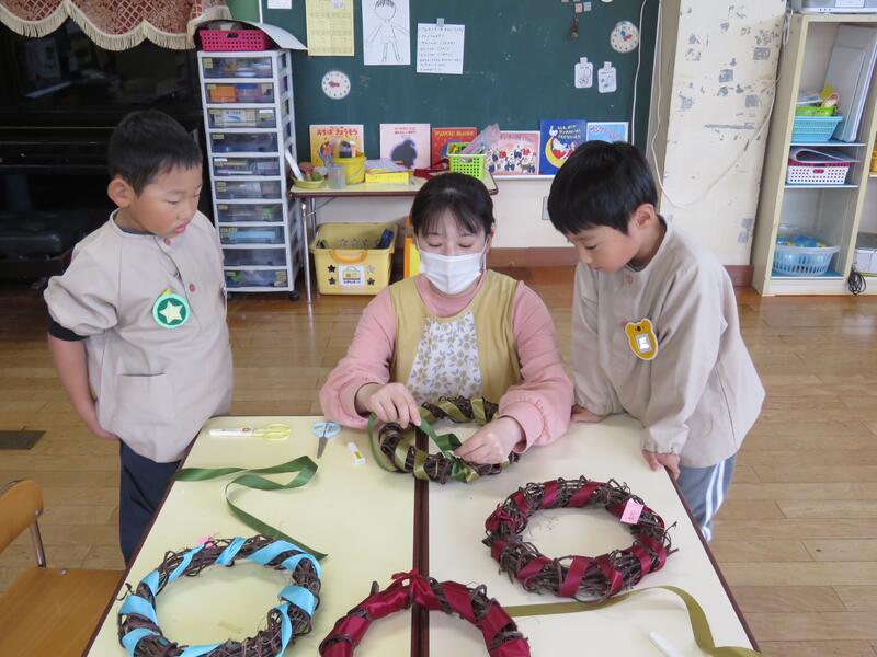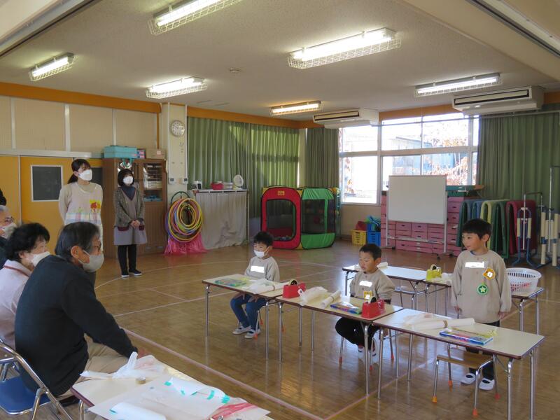 2024年12月13日 07時51分昨日は「お楽しみ会」。子どもたちがクリスマスの雰囲気を味わったり,きりん組全員で会の準備をし,一人一人が自分の力を発揮することをねらいとしています。この日のために学級でリースを作ったりクリスマスツリーを飾り付けたりしました。また,絵本を読んだりして期待感をもってお楽しみ会を迎えました。みんなで帽子をかぶって遊戯室に集まり,いよいよお楽しみ会が始まりました。みんなで「あわてんぼうのサンタクロース」を歌い,リズム「ジングルベル」の演奏が終わるとちょうど雪が降ってきっました。そして,サンタクロースがやってきました。「どうして手袋をしているんですか?」「粗利はどこに留めてきたんですか」「何で赤い色の服を着ているんですか?」などなど,子どもたちから素朴な質問も出ました。ハンドベルの出し物も子どもたちが一生懸命練習した成果