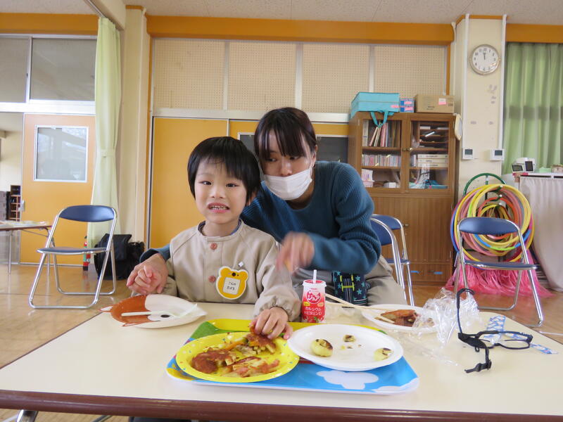 最後の会食もシチューやパン,ロールケーキ・・・。とってもおいしく,子どもたちはまた満足。本当に楽しい時間が流れました。