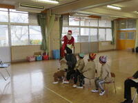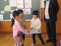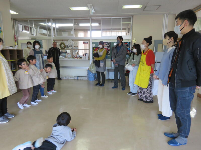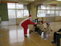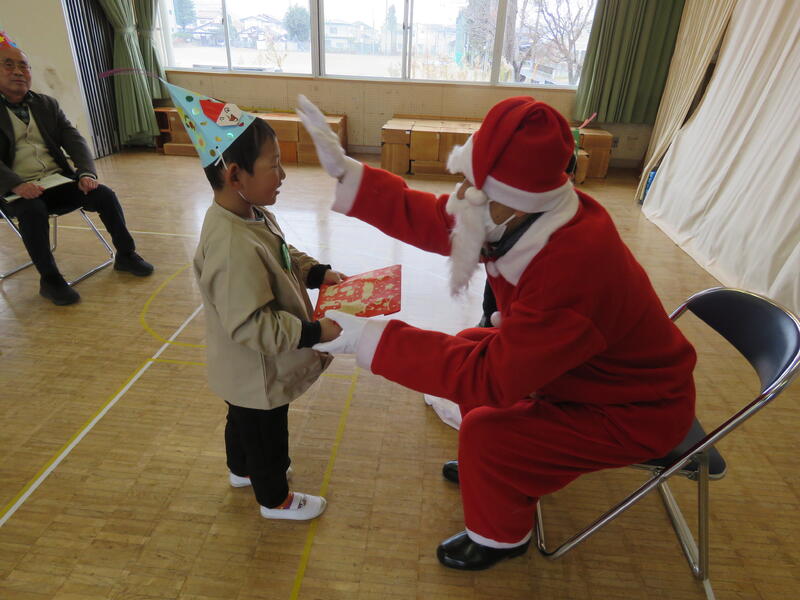 子どもたちも満足。驚きとうれしいサンタクロースの訪問でした。