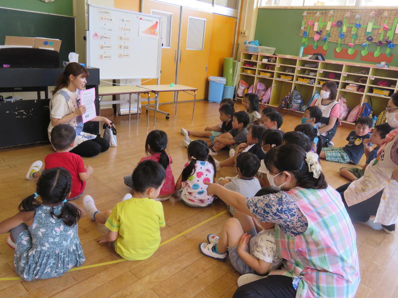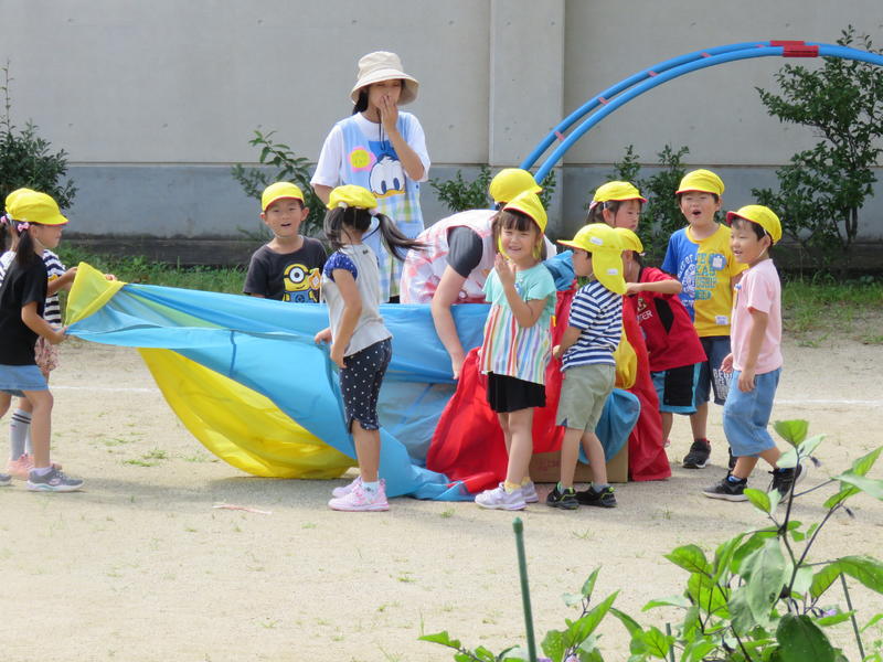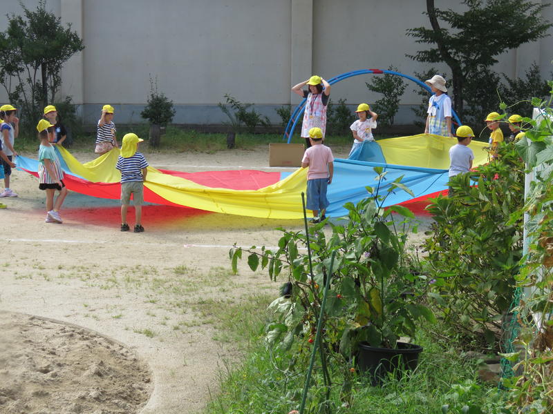 2学期が始まって5日目。連日暑い日が続きます。朝、出勤すると、園舎の中は35度になっている状態です。そんな中でも、子どもたちは毎日元気に活動しています。来週月曜日を過ぎると9月となります。少しは日中の暑さも和らぐことを期待したいところです。