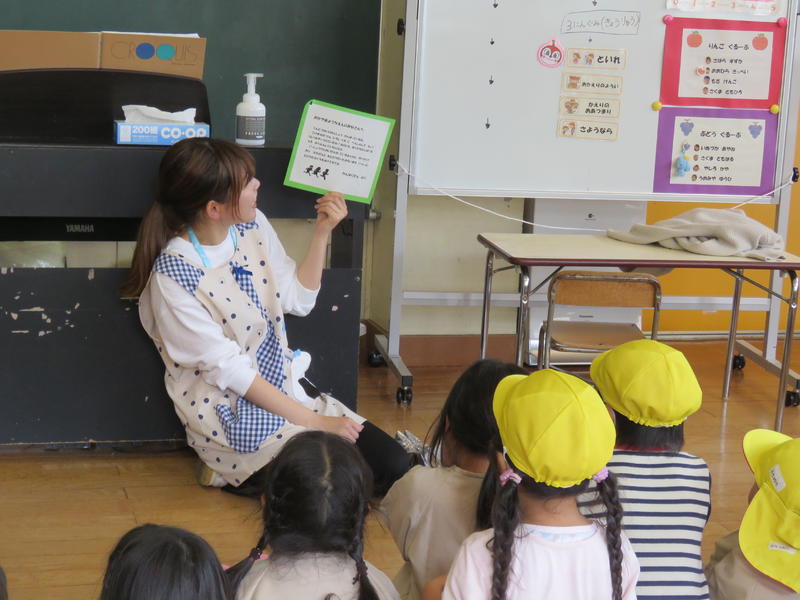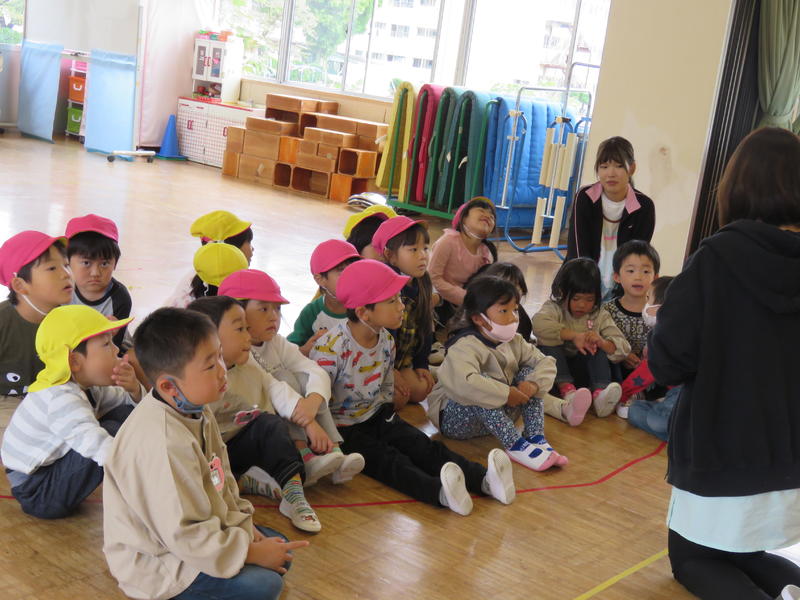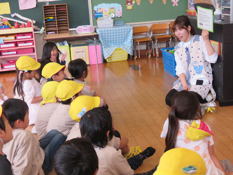 ※教育実習で来ている「福島学院短大」の学生さんにも協力してもらっています。