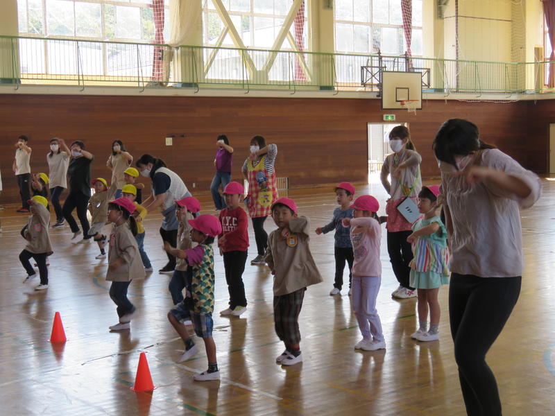 〇 幼稚園では恒例のダンス種目「バルーン」の練習です。