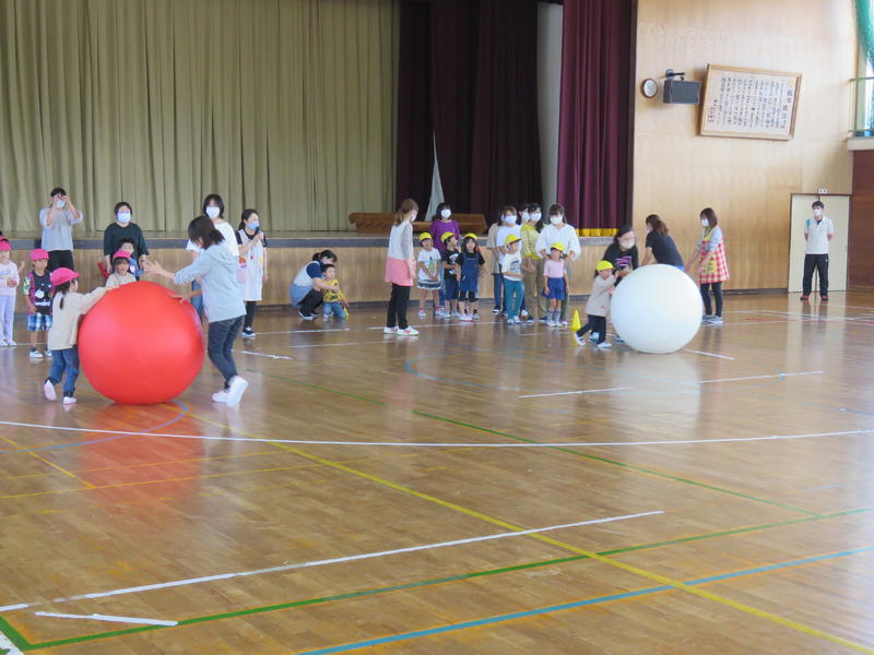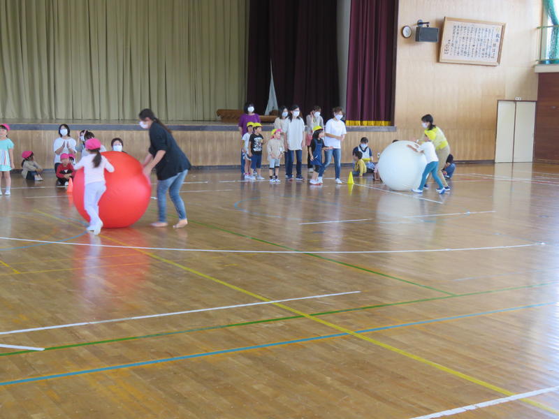 『ワンダーランド体操』(準備体操) と 『たまごをゴロゴロ』(大玉ころがし)