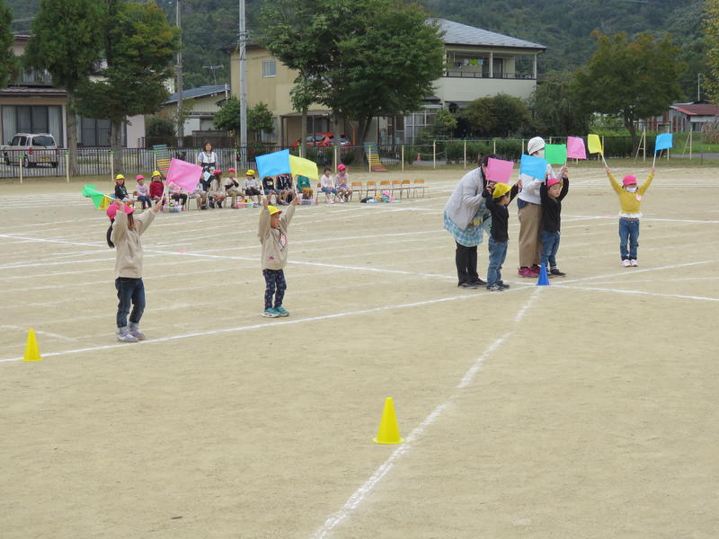 少し風があり手間取ったところもありましたが、お母さん方の協力もあり、運動会の予行を実施することができました。当日のプログラムの流れを確認しながら、子どもたちは、競技・ダンスを本番と同じように練習することができました。